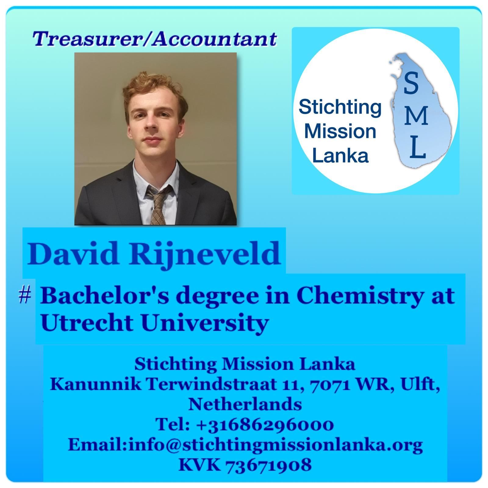 - De Mission Lanka Foundation heeft de ANBI-status verkregen. Uw donaties zijn daarom fiscaal aftrekbaar. De Mission Lanka Foundation is geregistreerd bij de Kamer van Koophandel onder nummer: 73671908 RSIN: 859623142. Het bestuur bestaat uit drie leden: Voorzitter: Shantha Dalugamage, Penningmeester: David Rijneveld, Secretaris: Jude Mary. De bestuursleden ontvangen geen vergoeding voor hun werkzaamheden en werken volledig op vrijwillige basis. Wanneer de Mission Lanka Foundation wordt opgeheven, zal een eventueel positief saldo worden gedoneerd aan een ANBI-organisatie met een vergelijkbare doelstelling als die van de Mission Lanka Foundation. Hieronder kunt u het beleidsplan 2026-2028 downloaden. Hieronder kunt u het jaarverslag 2022 downloaden.